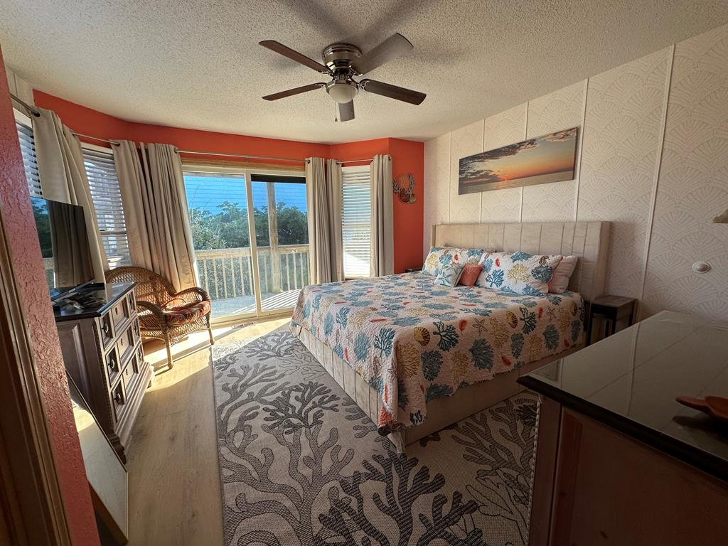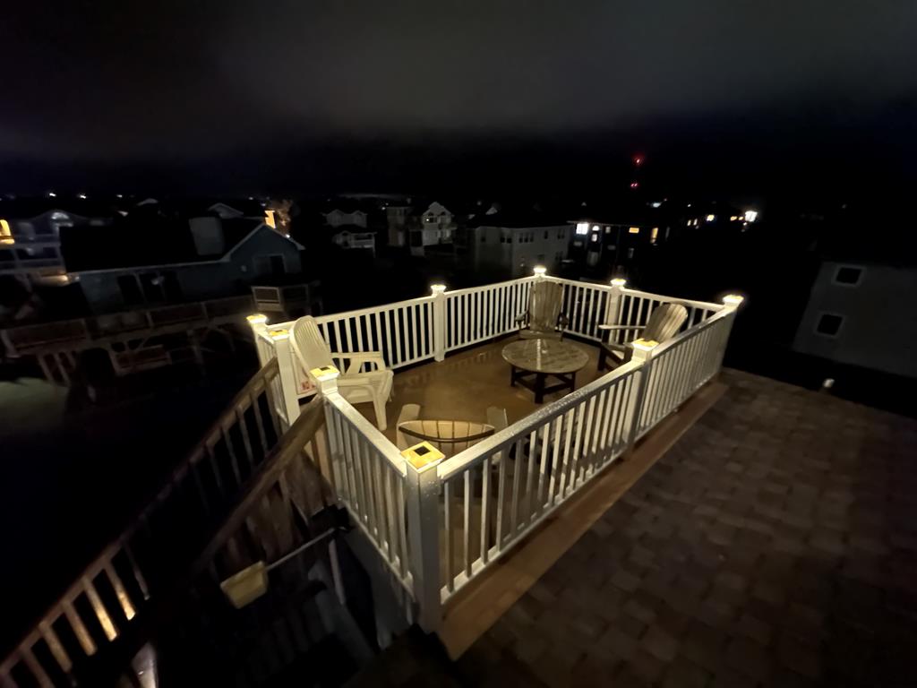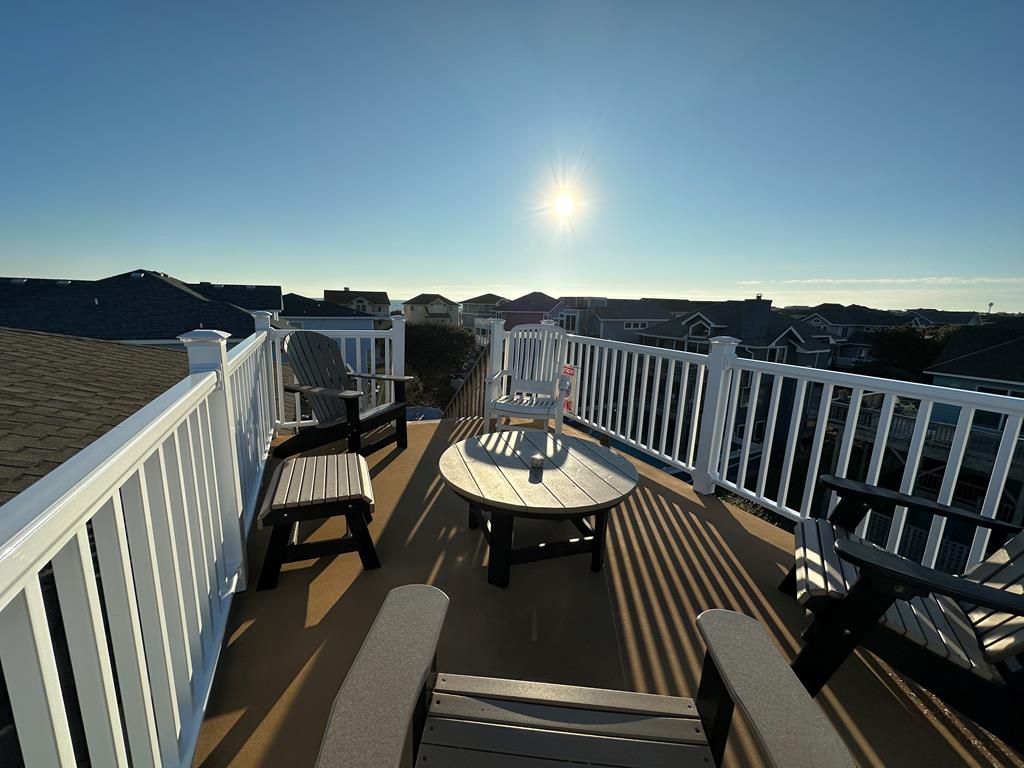 Top Level: Great room with comfortable seating, 65" smart TV, access to deck with Ocean Views and gas grill. Large dining area (10), Kitchen with bar (4), new granite counter tops and refrigerator lead to a screened in porch (which will be sure to be the favorite room in the house). Crows nest deck with amazing ocean views. King bedroom with 43" smart TV shares semi-private bath with living area. Separate Bar area with stand alone ice maker.